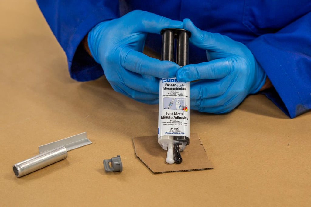 Der WEICON Fast-Metal Minutenkleber ist ein schnellhärtender 2-Komponenten-Epoxydharzklebstoff, der praktisch in der Zwillingsspritze geliefert wird. Er wurde speziell für Reparaturen und Verklebungen entwickelt, bei denen größere Toleranzen überbrückt werden müssen. Dank seines hohen Spaltfüllvermögens eignet er sich hervorragend für raue, schlecht passende Oberflächen und füllt Risse, Lunkerstellen sowie Unebenheiten zuverlässig aus.