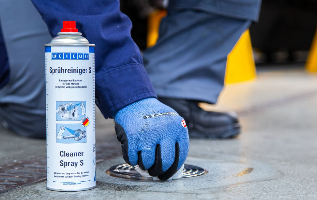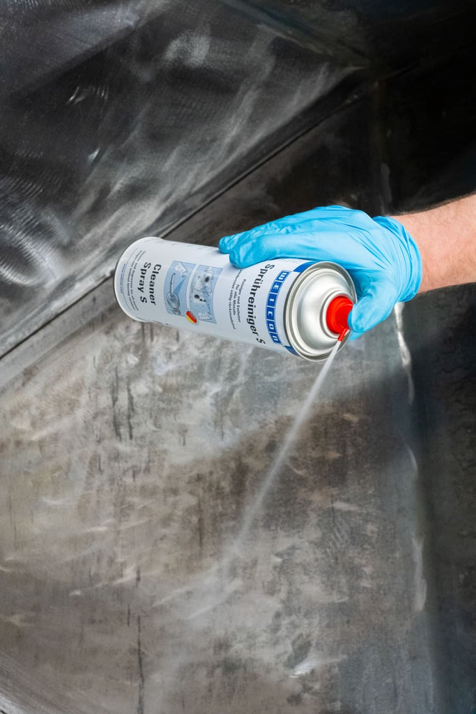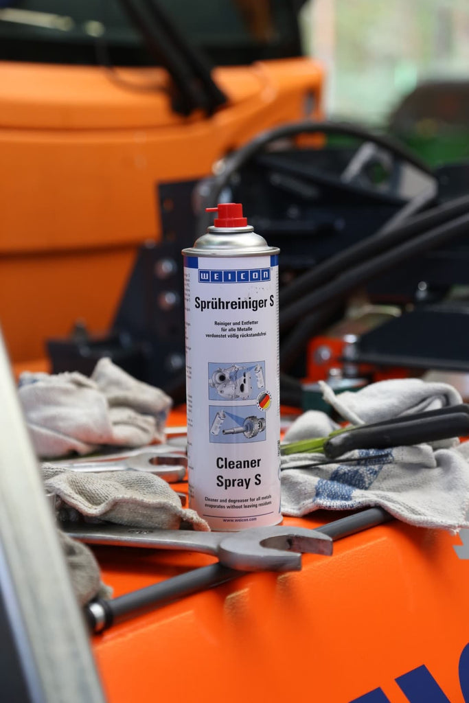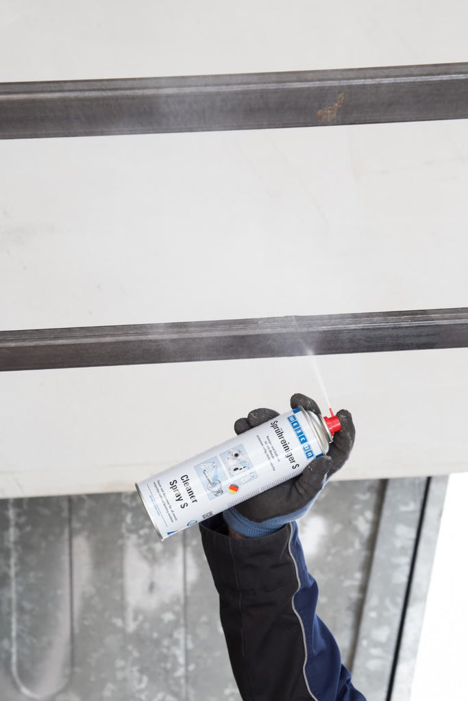 WEICON Spray Cleaner S cleans, degreases, dissolves quickly and evaporates completely without leaving any residue. Its special valve allows you to work overhead. The cleaner can be used on all metals, glass, ceramics and most plastics.