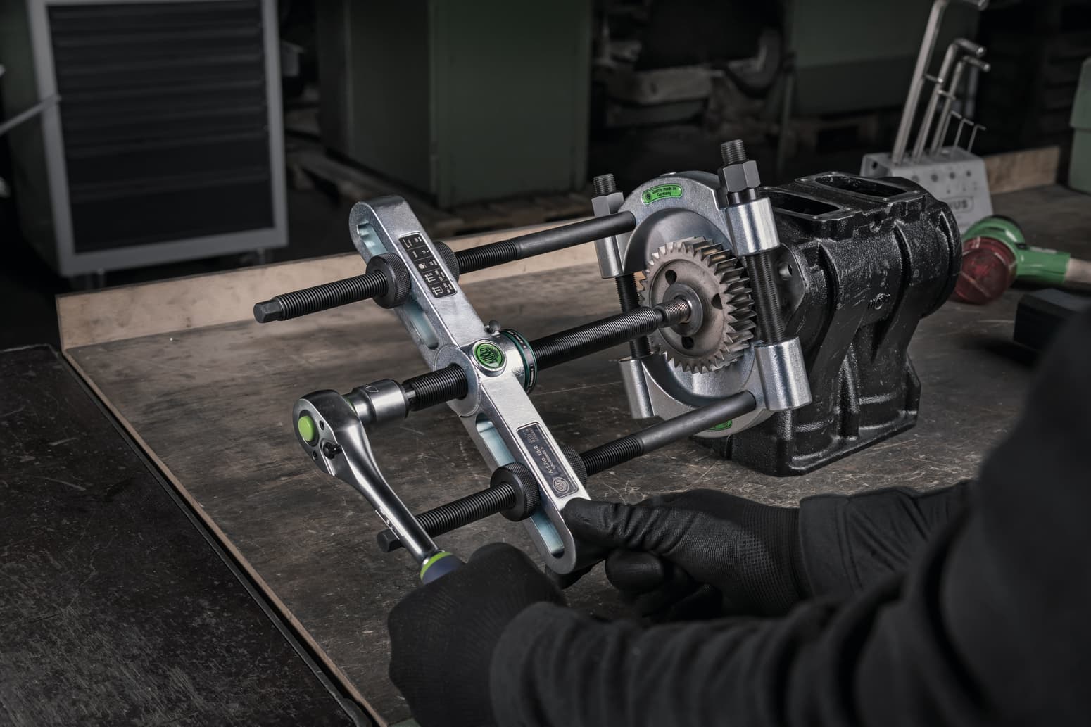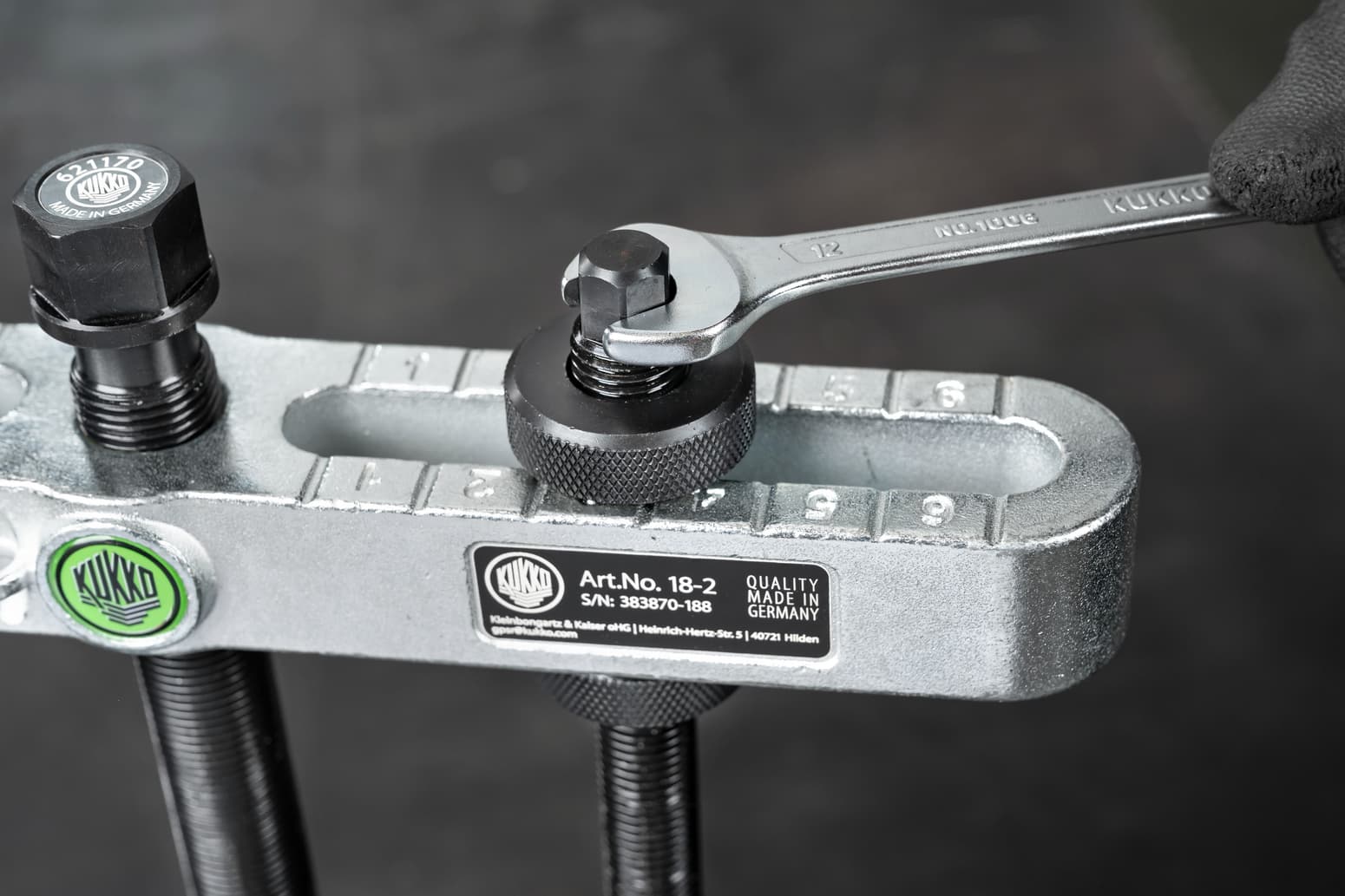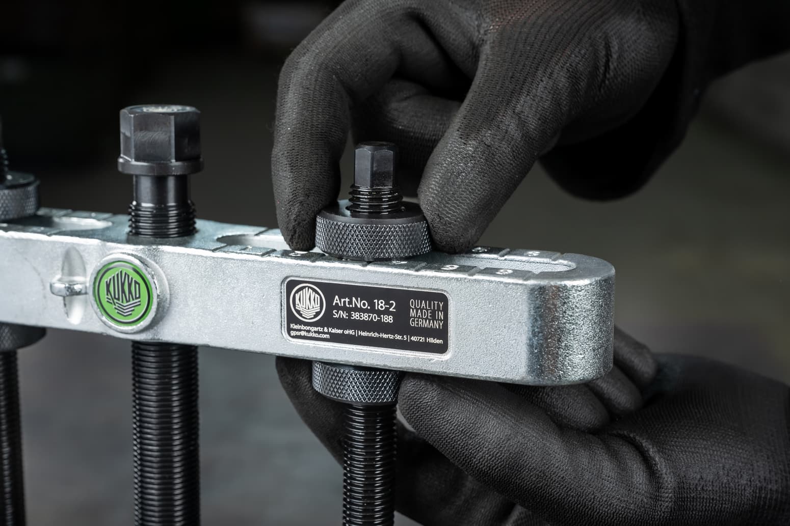 Die Abziehvorrichtung 18-0 ist die unverzichtbare Ergänzung zu den Trennvorrichtungen der Baureihe 15-0 und 17-0. Sie kommt überall dort zum Einsatz, wo herkömmliche Abzughaken aufgrund von Platzmangel nicht greifen können. Mit einer Spannweite von 32 mm bis 114 mm und einer Spanntiefe von 150 mm ermöglicht sie das kraftvolle Abziehen von vorgelösten Kugellagern, Rollenlagern und Innenringen.