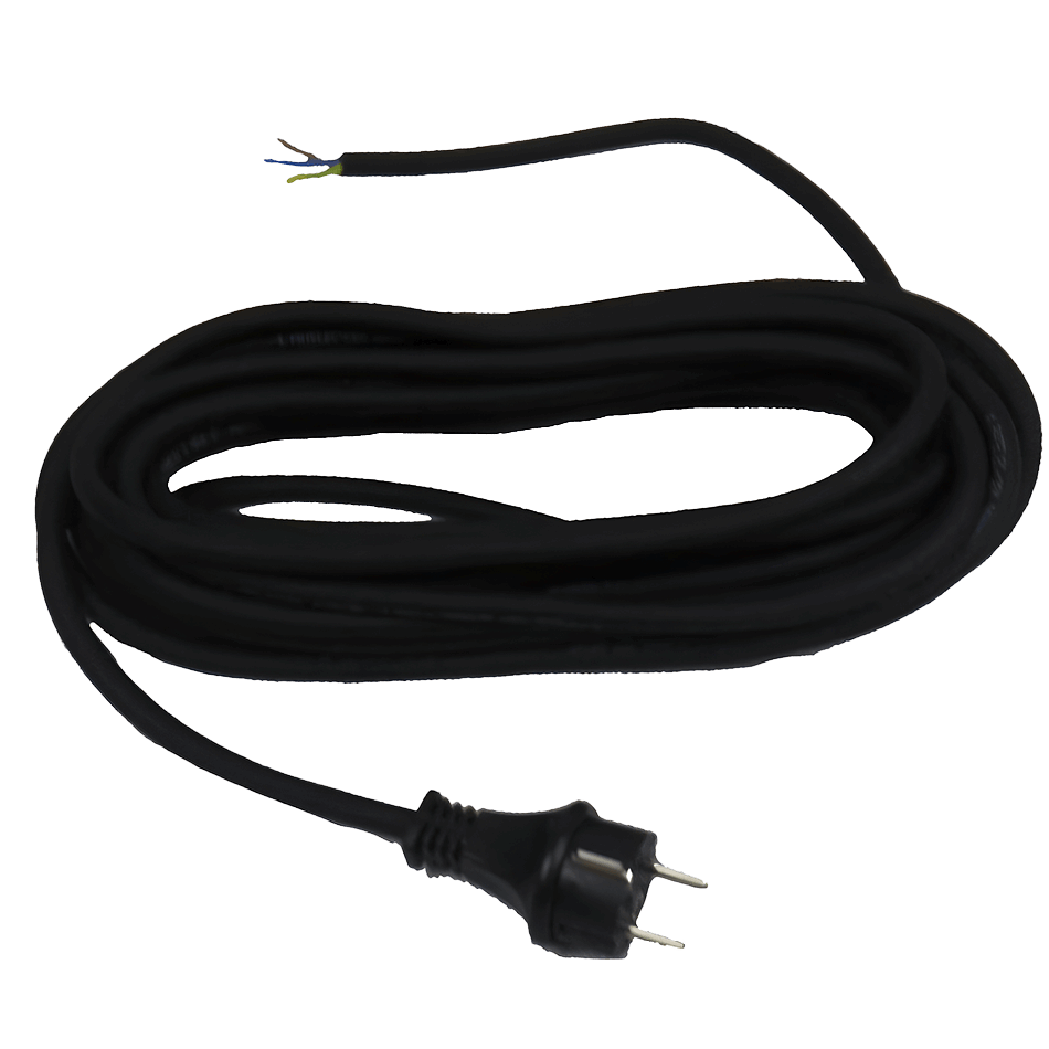 Die schwarzen VDE-geprüften Gummi-Kabel besitzen eine H05 RN-F bzw. H07 RN-F starke Ummantelung. Die angespritzten Konturenzentralstecker Nr. 352 mit Spritzwasserschutz und Hammerzeichen sind sehr Robust und Widerstandsfähig. Das Ende ist frei und ca. 35 mm bzw. 50 mm lang abgemantelt, abisoliert und mit Aderendhülsen versehen.