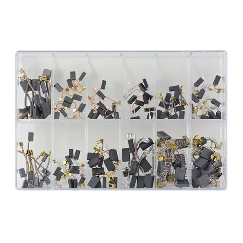 Das Kleinkohlensortiment ist speziell auf die Anforderungen von Bohrmaschinen und Schlagbohrern zugeschnitten. Es bietet eine gezielte Auswahl der gängigsten Kohlen für Reparatur und Wartung und besteht aus 12 verschiedenen Typen, um eine breite Abdeckung zu gewährleisten.