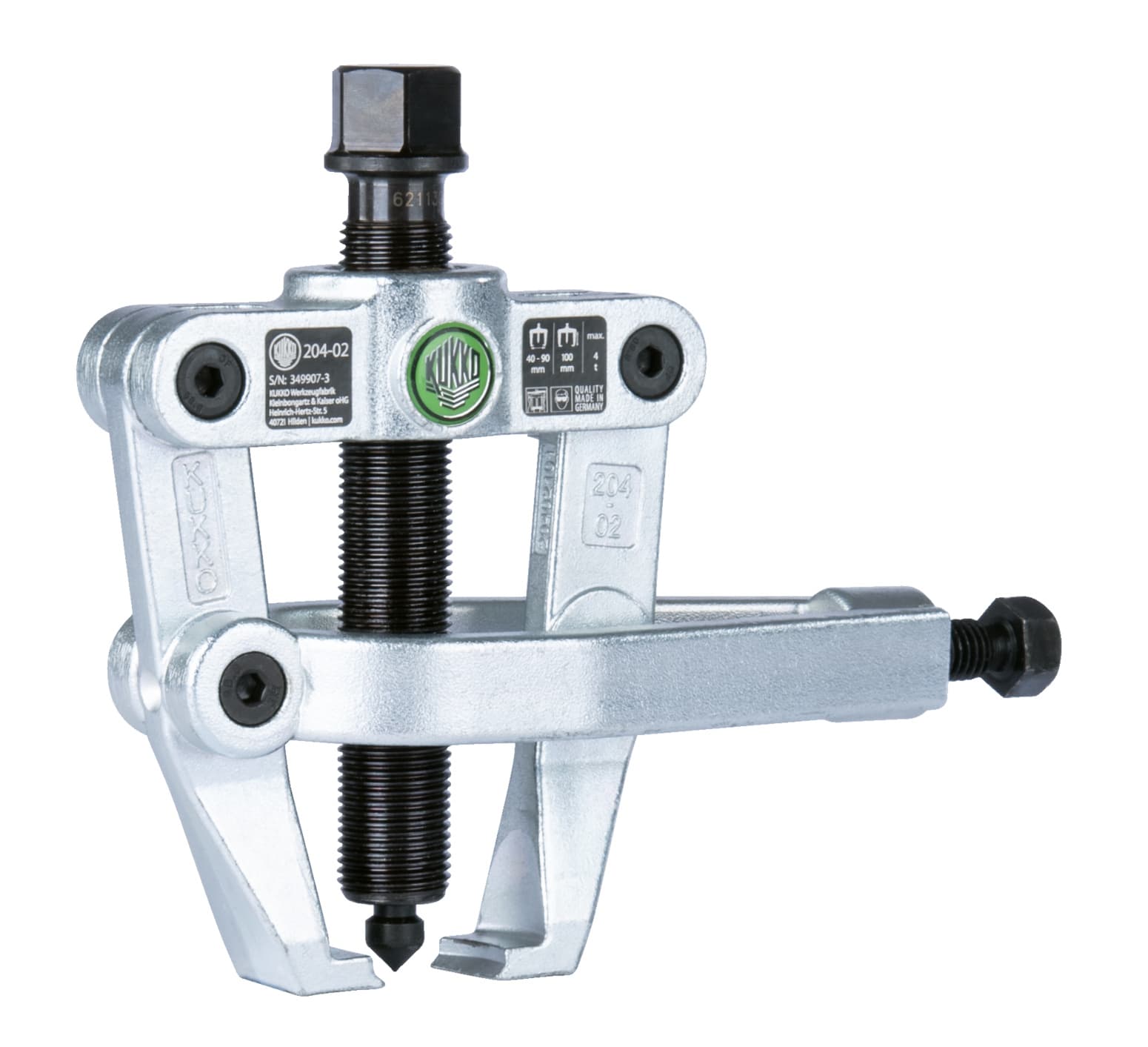 Der 2-armige Lagerabzieher "Cobra" 204-02 ist die leistungsstärkere Variante dieser Spezialserie für bündig anliegende Bauteile. Mit einem Spannbereich von 26 mm bis 90 mm und einer Spanntiefe von 100 mm löst er Kugellager und Lagerringe sicher ab, wo herkömmliche Abzieher keinen Halt finden. Die innovative Konstruktion kombiniert Trenn- und Abziehfunktion in einem Werkzeug.