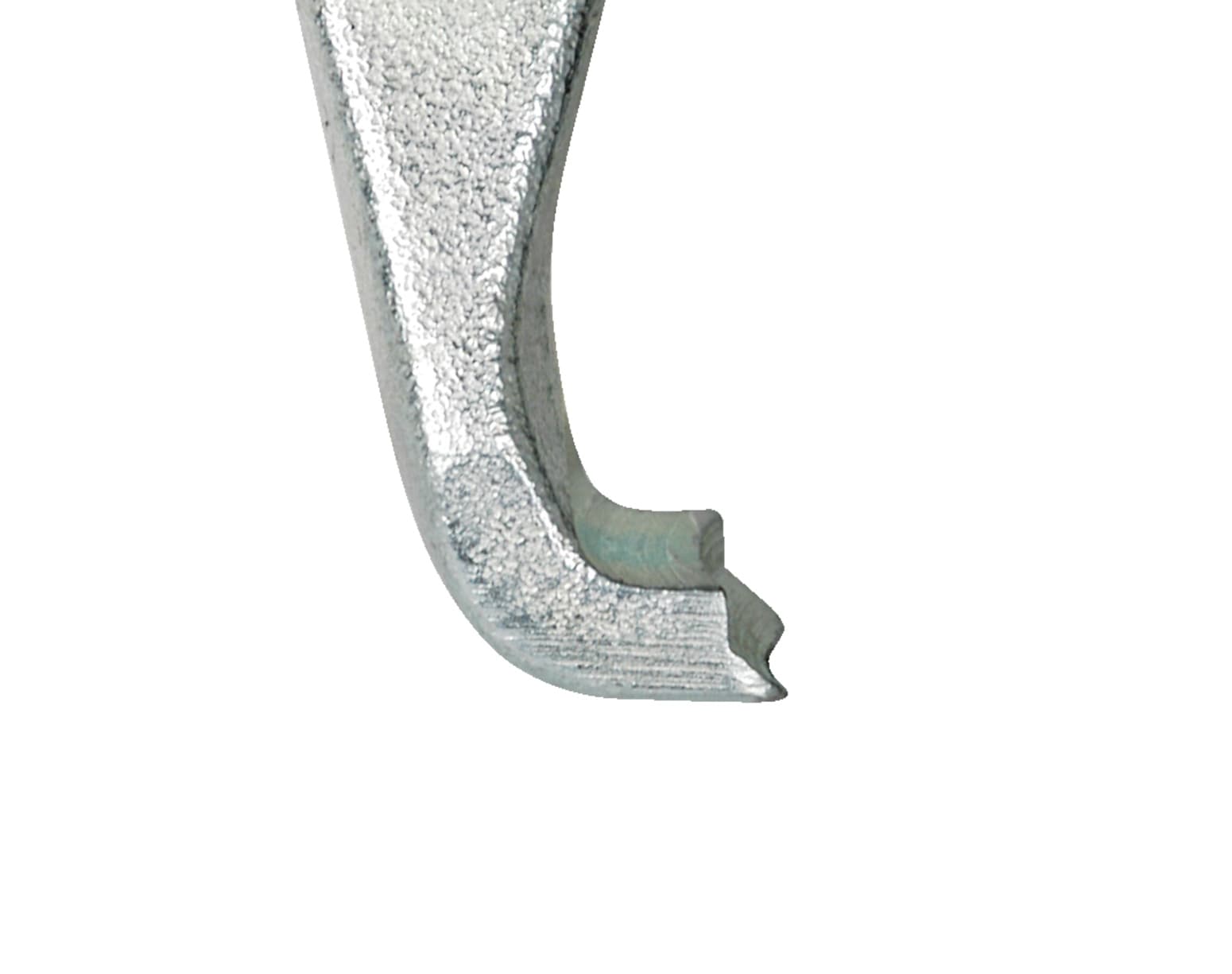 Das Herzstück dieses Abziehers ist die seitliche Spannzwinge. Sie presst die scharfen, krallenförmigen Abziehschenkel fest unter das abzuziehende Teil. Dieser Mechanismus löst das Bauteil bereits vor dem eigentlichen Abziehvorgang und verhindert zuverlässig ein Abrutschen der Haken.