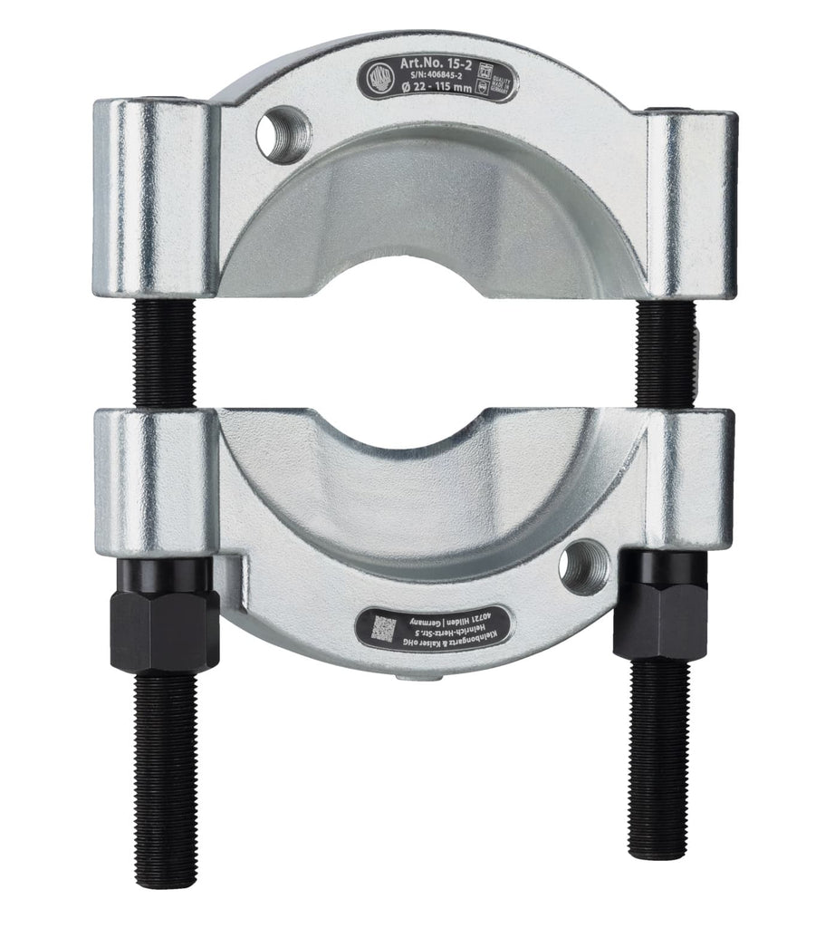 Die Trennvorrichtung 15-2 ist die leistungsstarke Lösung für Demontagearbeiten im mittleren Größenbereich. Mit einem Trenndurchmesser von 22 mm bis 115 mm ermöglicht sie das zerstörungsfreie Lösen von dicht aufsitzenden Kugellagern, Rollenlagern und Innenringen, bei denen herkömmliche Abzughaken aufgrund von Platzmangel nicht greifen können.